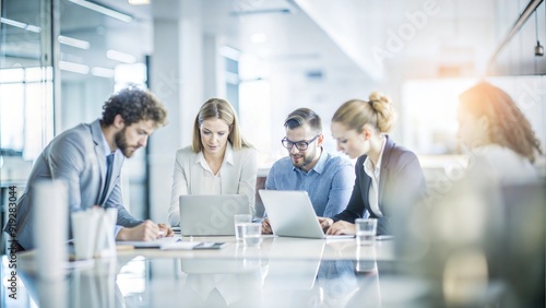 A collaborative workspace scene with team members working on a project, demonstrating cooperation and shared goals.
