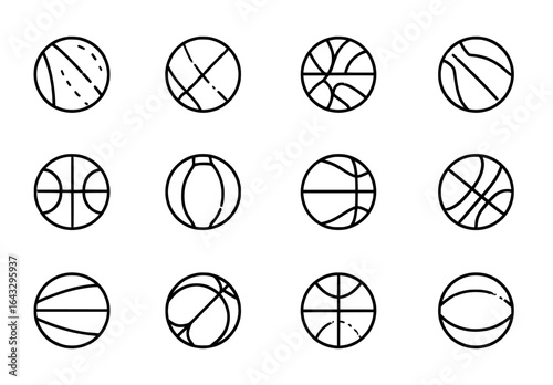 A collection of 20 minimalist basketball icons is available, including representations of basketball, dunking, hoops, jerseys, and referees, suitable for use in web design, mobile applications, and