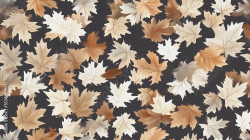 A collection of autumn leaves showcases a vibrant palette of warm colors and intricate textures, creating a striking visual contrast against a dark backdrop SEAMLESS PATTERN