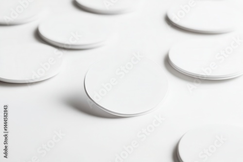 A collection of blank circular coasters arranged on a white surface, ideal for branding use
