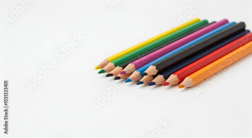A collection of colorful pencils arranged neatly with their tips facing forward.