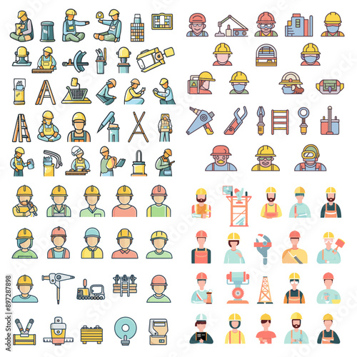 A collection of construction worker icons