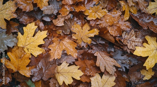 A collection of fallen leaves in autumnal colors resting on the ground