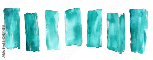 A collection of hand-drawn watercolor stripes in various shades of turquoise displayed on a white background