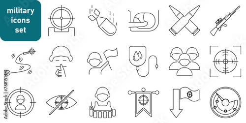 a collection of icons about the military, the contents of which include rifles, bullets, targets, and many more