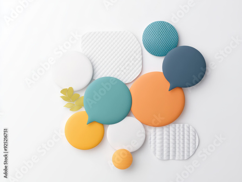 A collection of modern speech bubble decorations in various shapes, textures, and colors, arranged on a white surface, offering a stylish and abstract design element.