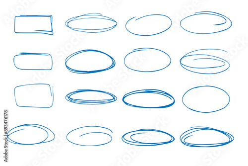 A collection of oval and square frames for text, hand-drawn in ink. Isolated elements in the form of selections for text