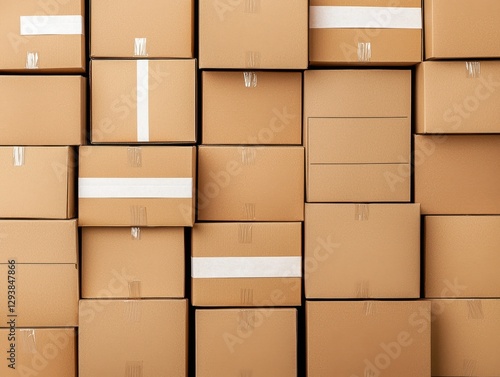 A collection of stacked cardboard boxes, showcasing various sizes and arrangements, emphasizing storage and organization.