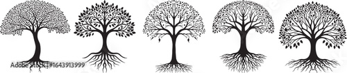 A collection of tree silhouettes with different forms, representing various stages of life and growth, ideal for environmental design and natural aesthetics.