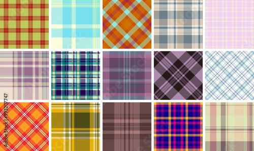 A collection of trendy plaid patterns with geometric checks, perfect for textile, fabric, wallpaper, or clothing designs.