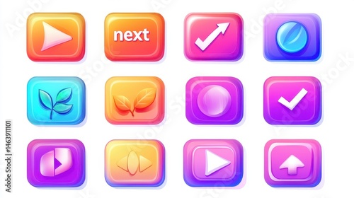 A collection of twelve colorful rounded square icons with various symbols on a white background