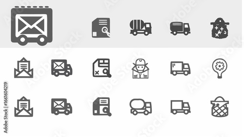 A collection of various delivery and document related icons arranged in a grid pattern layout design