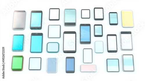A collection of various smartphone and tablet screens showcasing different sizes and colors, ideal for digital designs.