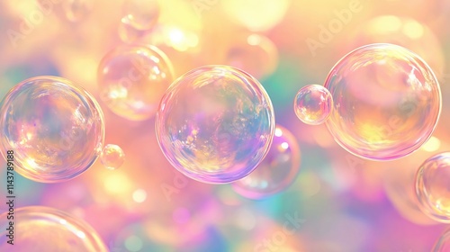 A collection of vibrant soap bubbles against a soft pastel background.