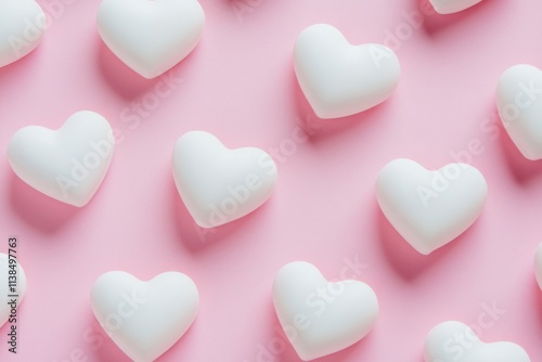 A collection of white hearts on a pink background, perfect for Valentine's Day or romantic occasions