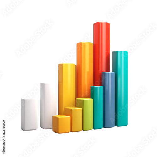 A colorful abstract 3d bar chart representing data analysis and business growth, isolated on a transparent background
