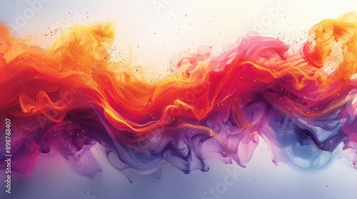 A colorful abstract design with ink and paint bursts, featuring swirling rainbow swirls and a cloud-like blend, emphasizing dynamic artistic energy