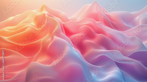 A colorful, abstract image of a mountain range with pink and orange hues