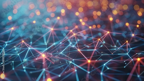 A colorful, abstract image of lines and dots that appear to be connected in some way. The image has a futuristic, technological feel to it, with the lines and dots resembling a network or web