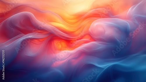 A colorful, abstract painting of a wave with a purple and orange background ,The painting is full of energy and movement.