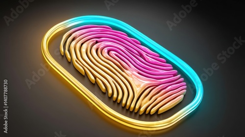 A colorful, abstract representation of a fingerprint, featuring fluid lines and vibrant gradients in blue, pink, and yellow against a dark background.