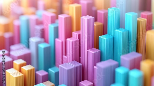 A colorful, abstract representation of vertical bars in varying heights and hues, creating a vibrant 3D landscape.