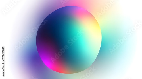 A colorful abstract shape with smooth gradients and a soft glow, set against a blurred background