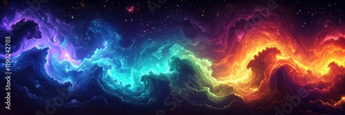 A colorful and dynamic abstract pixel art design with neon swirling gradients in shades of blue, purple, and electric green