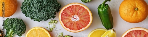 A colorful arrangement of fresh fruits and vegetables on a table