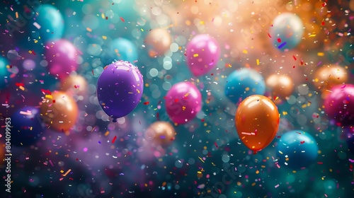 A colorful background teeming with balloons and confetti, evoking a sense of joy and merriment
