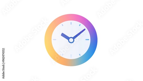A colorful clock with the hands at 3:00 and 9:00
