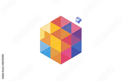 A colorful cube with a square in the middle. The cube is made up of many smaller squares