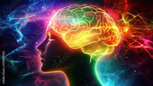 A colorful depiction of a brain intertwined with cosmic elements, symbolizing creativity and thought.