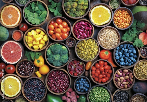 A Colorful Display of Fresh Fruits and Vegetables in Wooden Bowls, Showcasing a Varied Selection of Organic Produce for Healthy Eating and Culinary Inspiration