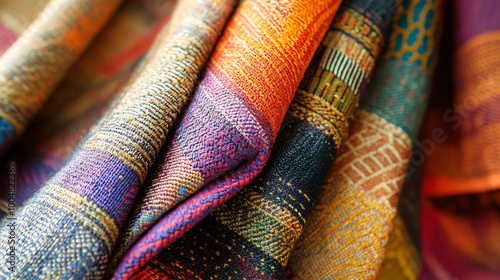 A colorful fabric weave texture, showcasing rich patterns and textiles.