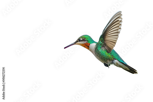 A Colorful Hummingbird Flying While Sipping Nectar from a Flower