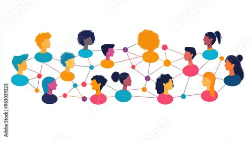 A colorful illustration depicting connected faces representing diversity and communication in social networks