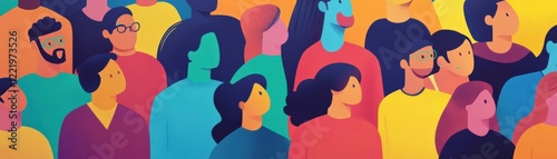 A colorful illustration featuring diverse faces, highlighting individuality and community in a vibrant, artistic style.