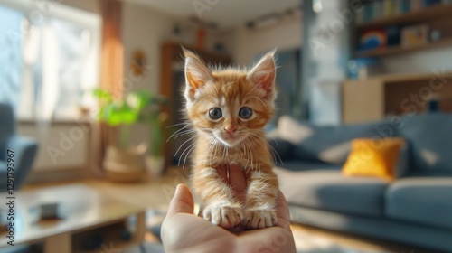 A colorful kitten high-definition photo standing on the tip of someone's finger, hyper-realistic, macro photography, vibrant colors, natural lighting, high resolution,