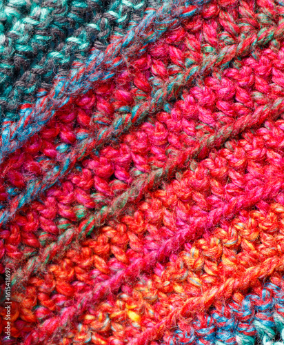 A colorful knit scarf with a striped pattern