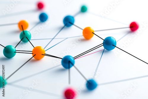 A colorful molecular structure with interconnected nodes, illustrating relationships and connections in a scientific or educational context.