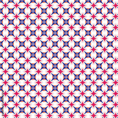 A colorful seamless geometric pattern with retro style triangles squares and lines in blue and pink for wallpaper and decorative design