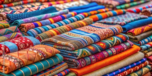 A Colorful Stack of Fabric Rolls in a Market, Fabric, Textile, Pattern, Market