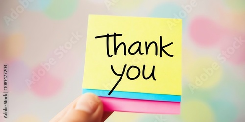 A colorful sticky note with a handwritten ?Thank You? in bold, clear script, with plenty of breath space around the text.