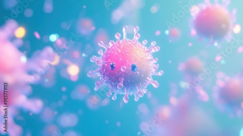 A colorful, stylized representation of a virus in a vibrant, abstract environment.