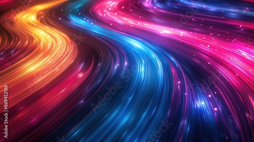 A colorful, swirling line of light with a blue and red stripe