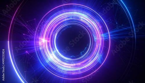 A colorful, swirling vortex of energy in shades of blue and purple, with a central point of darkness, suggesting a sense of mystery and cosmic phenomena.