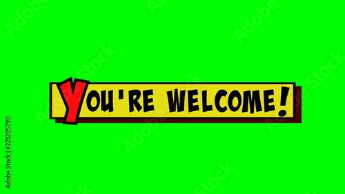 A comic strip yellow box with the words You're welcome popping up in red and black, cartoon-style. Green background.