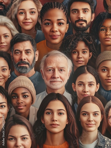 A community and people from different diverse multicultural backgrounds symbolizing creativity, diversity, and unity through DEI practices celebrating uniqueness and individuality