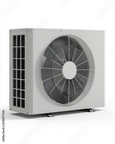 A compact air conditioning unit featuring a large fan for efficient cooling, suitable for both residential and commercial spaces.
